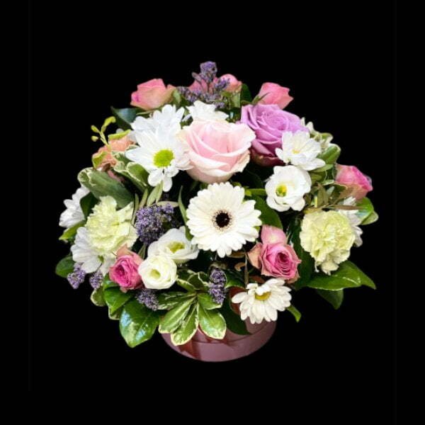 The Charlotte Hatbox is a stunning multicoloured flower arrangement that brings a touch of elegance to any occasion. This beautifully crafted blossom is loved by all who receive it, making it an ideal gift.
