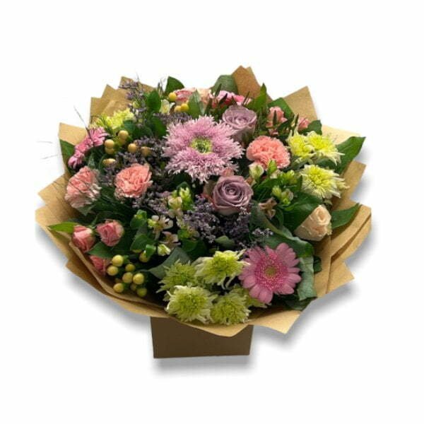 Pink Lavender Bouquet is a multicoloured bouquet that becomes the jewel of the fall season. This bouquet is heavy in lavender, orange and pink colour tone.